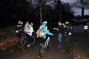 Es wird auch noch einmal an die Eltern appelliert, die Fahrräder der Kinder zu überprüfen und verkehrssicher auszustatten, bevor sie zur Schule fahren. Dazu gehören neben Licht auch funktionierende Bremsen und eine Klingel. Zwei Kinder waren mit sogenannten Spaßrädern – BMX unterwegs, diese besitzen kein Licht. Auch aus Bequemlichkeit hatte ein kontrolliertes Kind kein Licht am Fahrrad, es war in seinem Schulranzen. Es wurde darauf hingewiesen, wie gefährlich es ist, im Dunkeln ohne ausreichende Beleuchtung zu fahren. Auch das Fahren mit Kopfhörern ist verboten. Dieses wird mit einem Bußgeld bestraft, denn ein Ohr muss immer frei sein. Dies gilt auch für andere Verkehrsteilnehmer wie Sportler, besonders Jogger. Die Ergebnisse der Kontrolle wurden an die Klassenlehrer weiter geleitet. Diese werden dann prüfen, ob die Mängel behoben sind.