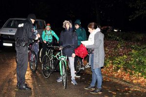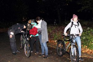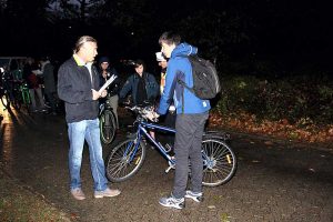 Diese wurden von den Lehrern in Listen notiert. Die Hauptmängel waren fehlende Reflektoren oder Hauptlichter oder die gesamte Beleuchtung mit Rückstrahler war defekt. „Wir wollen Euch nicht ärgern – sehen und gesehen werden“, war der Aufklärungspruch von Ralf Buchmeier an die Kinder des Schulzentrums.