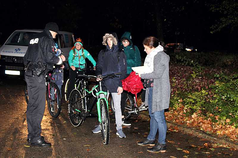 Bereits um 7.20 Uhr hatten sich die Polizei und Lehrer vor den zwei Eingängen des Schulzentrums Goldene Aue postiert, um eine Beleuchtung- und Fahrradkontrolle durchzuführen.