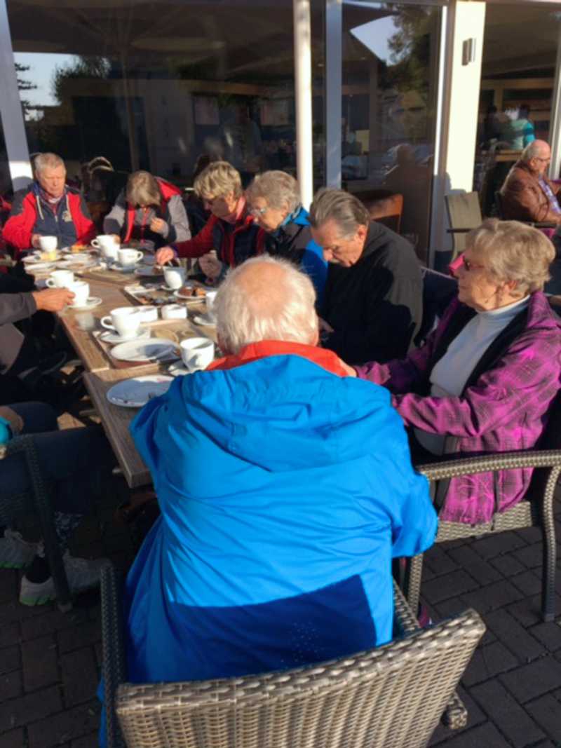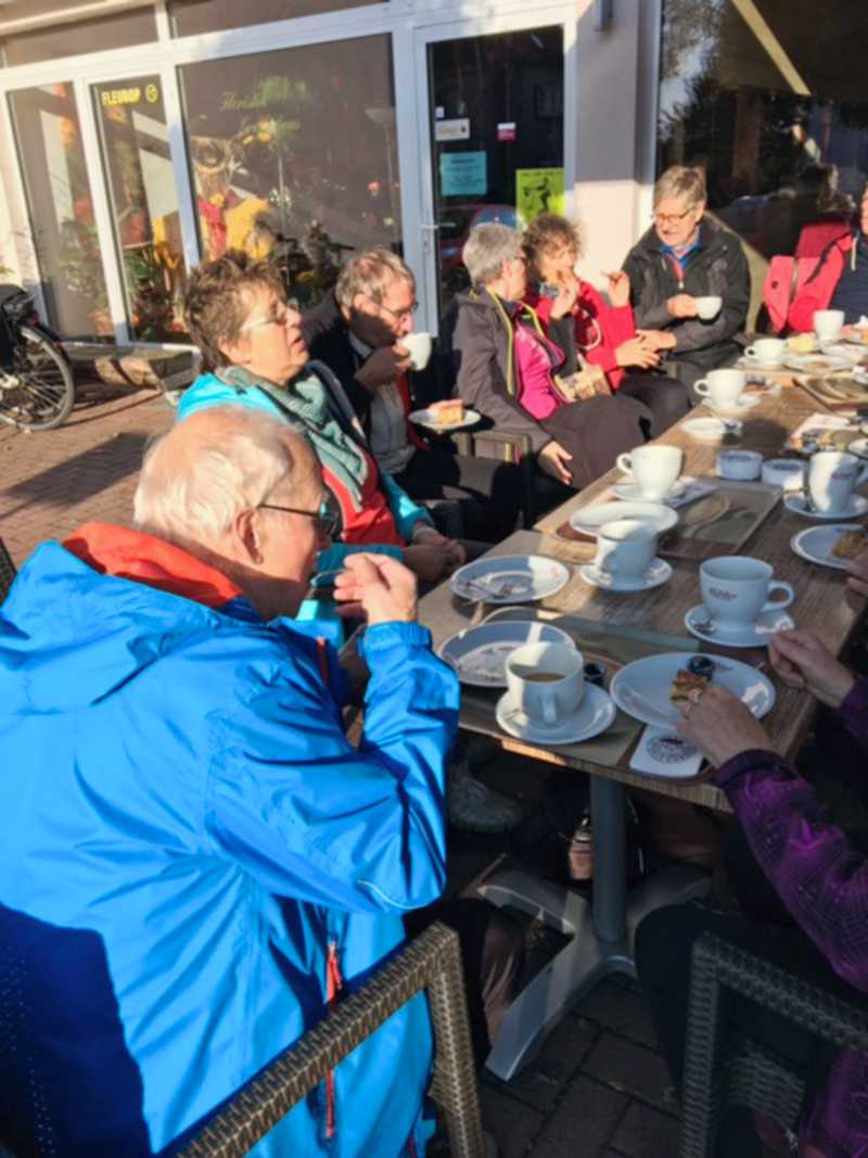 Am Südsee hatten wir Gelegenheit, eine Radlerin unserer Gruppe nachträglich zum Geburtstag mit einem Lied zu beglückwünschen.