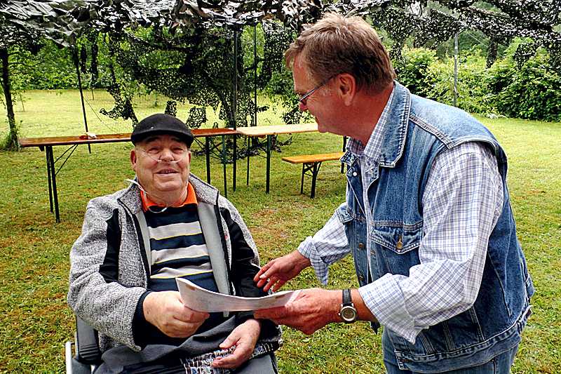 In Regenpausen nahm Klaus-Rüdiger Griesbach die Ehrung für Oberfeldwebel d.R. Fritz Behrens und Stabsunteroffizier d.R. Andreas Fuchs vor. Im Auftrag des Landesvorsitzenden des Landesgruppe Niedersachsen, Oberst d.R. Manfred Schreiber, überreichte er den Jubilaren Urkunden für ihre treue, langjährige Mitgliedschaft und Mitarbeit im Reservistenverband. Fritz Behrens ist seit 45 Jahren dabei, davon war er sieben Jahre Vorsitzender der RK Wiedelah. Andreas Fuchs ist seit 15 Jahren Mitglied.