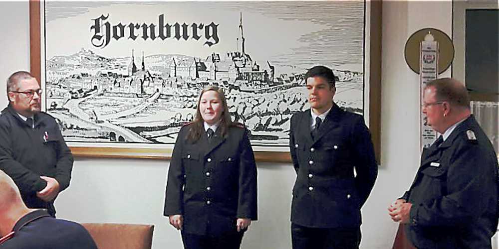 Der Tagesordnungspunkt 4, die Übernahmen, bei dem man sich sehr über zwei neue Mitglieder in den aktiven Reihen der Einsatzabteilung freuen konnte. Amelie Grünhage und Michel-Pierre Langner wurden per Handschlag des Ortsbrandmeisters offiziell in die Freiwillige Feuerwehr der Stadt Hornburg aufgenommen. Im Anschluss folgten die Berichte der Gruppenführer, Gerätewart, Atemschutzbeauftragtem und Sicherheitsbeauftragten. Der Jugendwart Marvin Fricke gab ebenfalls einen kurzen Bericht über die Aktivitäten der Jugendfeuerwehr unter anderem auch von dem 40 jährigen Jubiläum. Auch Fricke lobte die gute Kooperation mit den Aktiven und bedankte sich für die Unterstützung.