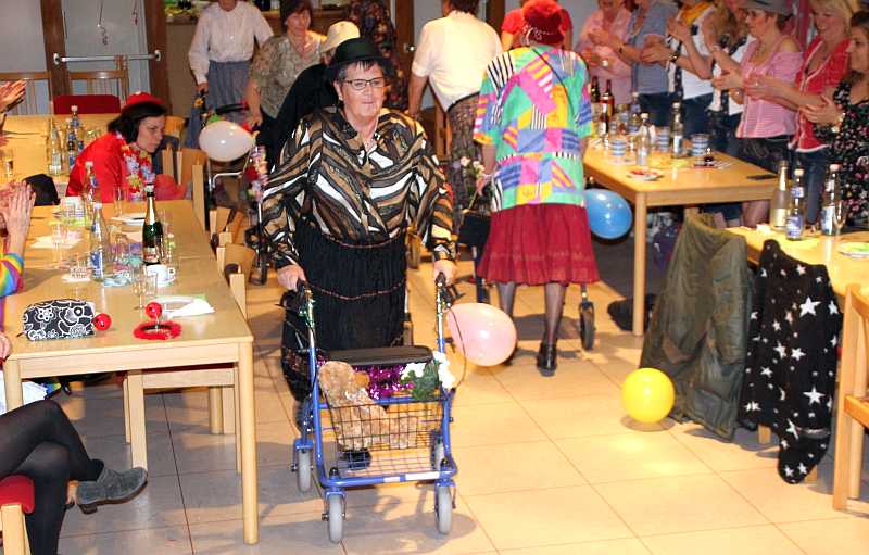 Höhepunkt des Programms war der Auftritt der Seniorinnen mit dem Omasong und dem Tanz mit dem Rollator. Das Publikum forderte prompt eine Zugabe. Zwischen den Auftritten wurde kräftig getanzt. Kathi und Artur Skutela sorgten mit Stimmungsliedern für ausgelassene Partystimmung. Phantasievoll verkleidete Damen aus Vienenburg, Goslar und Bad Harzburg wuselten durch den Saal. Bei der Polonaise blieb kein Stuhl besetzt. Für das leibliche Wohl sorgte das Thekenteam mit Brygida Reimann und Brigitte Schäfer.
