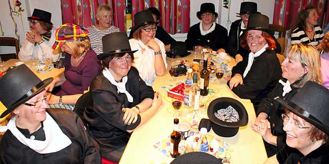 Natürlich durften die Polonaisen durch den Saal nicht fehlen. Viele unterschiedliche Kostüme waren vertreten, vom Mönch bis zum Fliegenpilz. Einige Damen kamen als Schornsteinfegerinnen. Beim 64. Frauenfasching war das Publikum wieder aus beiden Konfessionen bunt gemischt, auch aus Goslar, Bad Harzburg und Wiedelah kamen die Gäste. Das Thekenteam mit Brigitte Singer, Jutta Scholz und Brigitte Schäfer sorgten mit verschiedenen Getränken und leckeren Köstlichkeiten für das leibliche Wohl.