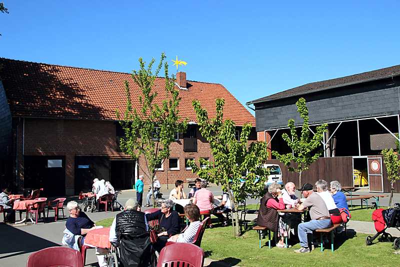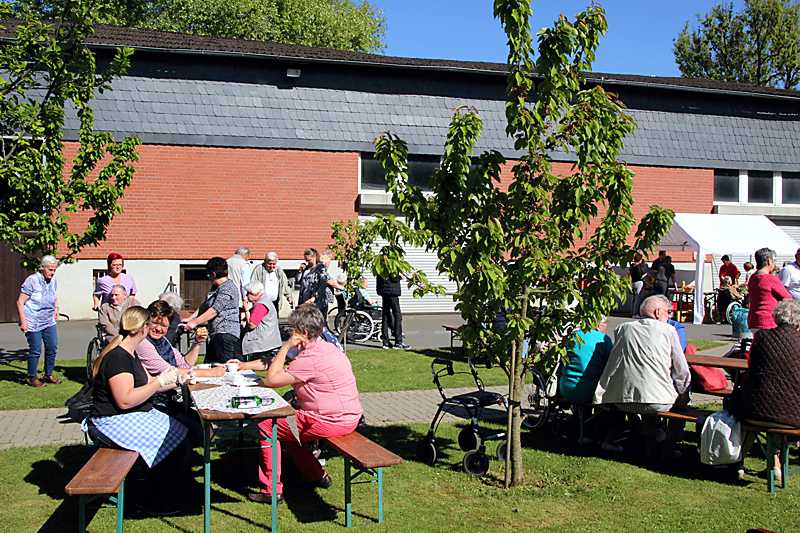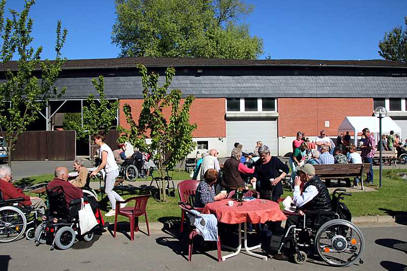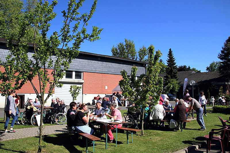 Es war viel los beim Frühlingsfest auf dem weitläufigen Gelände der Grotjahn-Stiftung. Das herrliche Sommerwetter lockte zahlreiche Besucher an, um mit den Bewohnern auf den zahlreichen Sitzplätzen zwischen den Bäumen am Garagenhof und dem Teich gemütliche Gespräche zu führen.