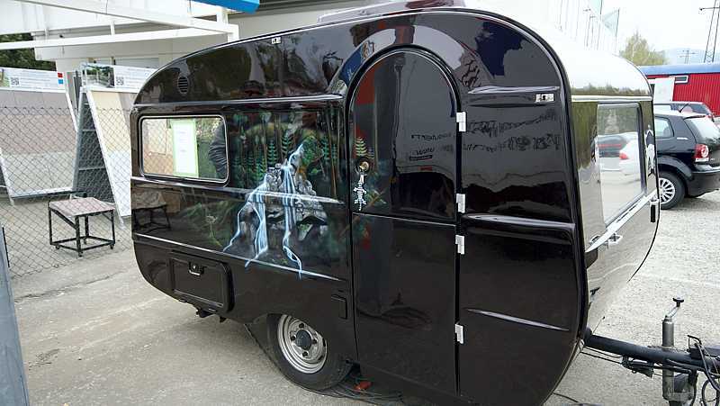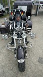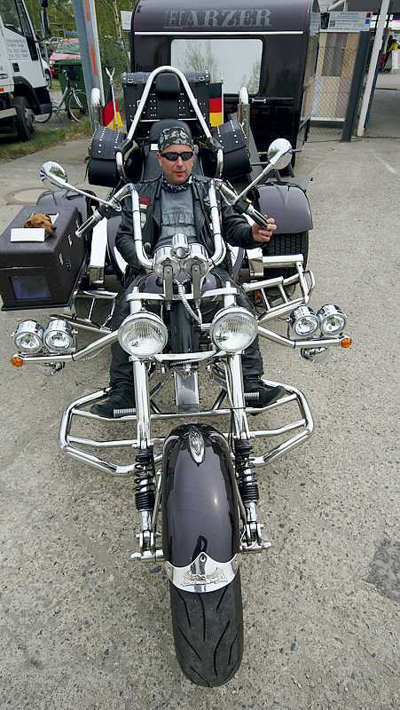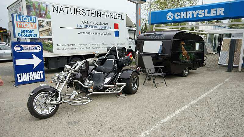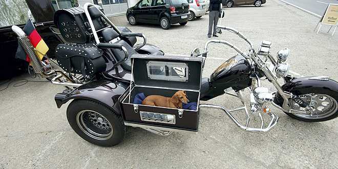 Mario Knappe, Inhaber der Firma Smartrepair Goslar, mit seinem Hobby: das von ihm selbst umgebaute Trike mit "Beiwagen" für seinen Hund "Dascha"