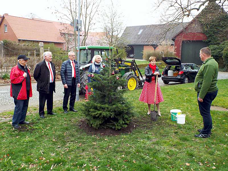 Dem Geschichts- und Heimatverein Dörnten wurde die im vergangenen Jahr gepflanzte Tanne zwischen Weihnachten und Silvester gestohlen. Spontan meldete sich Herr Hellmann vom Gesangsensemble D.A.S. Chörchen aus Goslar und bot seine Hilfe an, eine neue Tanne zu beschaffen.