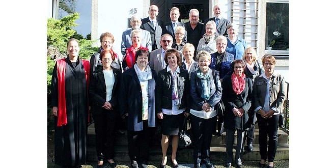 1. Reihe von links: Pfarrerin Dagmar Hinzpeter, Jutta Reiße (geb. Bachmann), Gerda Tezzele (geb. Czarnecki), Ingrid Lepa (geb. Reuter), Elvira Dieber (geb. Hoffmann), Marianne Müller (geb. Miehe), Sigrid Meyer (geb. Warmer).