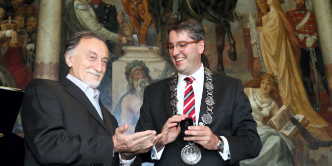 Oberbürgermeister Dr. Oliver Junk überreichte heute Mittag dem in Berlin und Charkow/Ukraine lebenden Künstler Boris Mikhailov in der historischen Kaiserpfalz den Kaiserring der Stadt Goslar, einen der renommiertesten Kunstpreise unserer Zeit. Der 77-jährige ukrainische Fotograf gilt heute als einer der angesehensten und einflussreichsten Vertreter zeitgenössischer Fotografie. Junk wies in seiner Festrede darauf hin, dass die Verleihung des Kaiserringes an Boris Mikhailov für die Stadt Goslar eine große Ehre darstelle. „Jeder Künstler spürt, dass hier eine herzliche Atmosphäre zur Ehrung seiner Person und seines Werkes entsteht und nimmt die zwei Tage in Goslar immer als positive Erinnerung mit“, sagte Junk. Kunst und Kultur steigerten die Attraktivität Goslars und der Kaiserring sei eine starke Marke der Stadt, so Junk weiter.