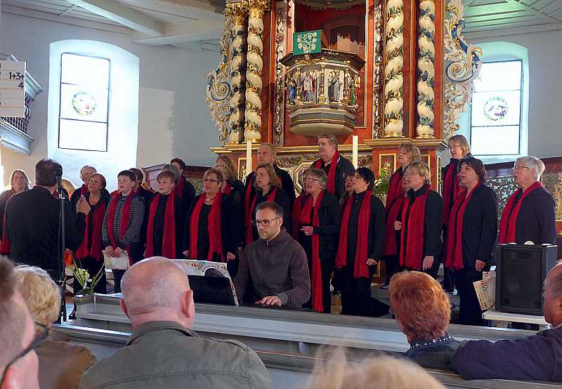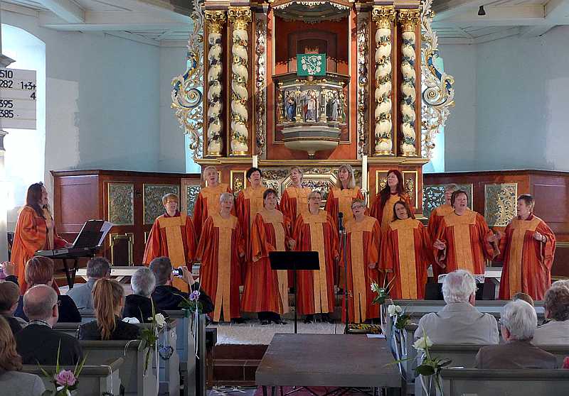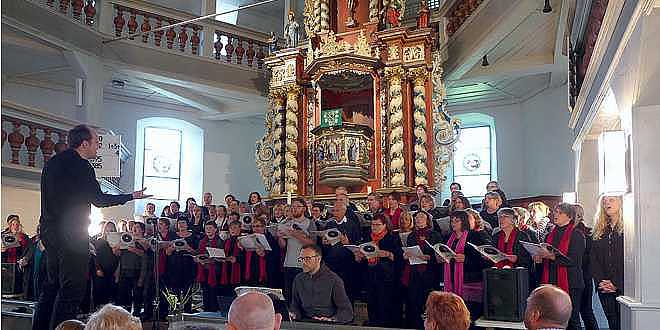 Dankesworte des gastgebenden Chores an die Teilnehmer, an die emsigen Helfer, die Sponsoren und an die drei Dozenten durften natürlich nicht fehlen. Stehende Ovationen begleiteten die Sängerinnen und Sänger hinaus als sie mit ihrer letzten Zugabe singend die Kirche verließen.