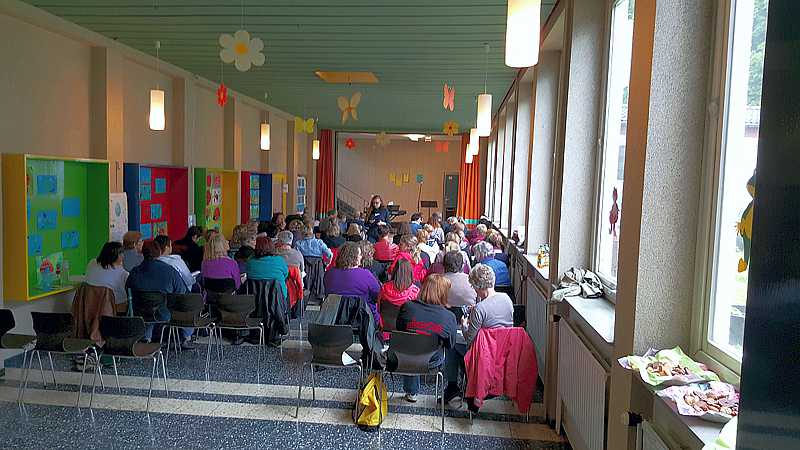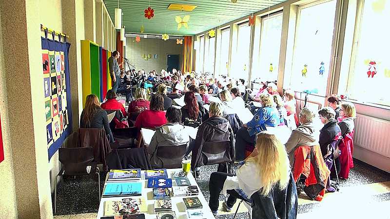 Aus organisatorischen Gründen fand der Workshop in der Grundschule in Lautenthal statt, wo die 15 aktiven Sängerinnen der Prais’n Colours am Freitag abend weitere 60 Sängerinnen und Sänger begrüßen konnten. Über das Wochenende wurden 8 mehrstimmige Gospelsongs einstudiert.