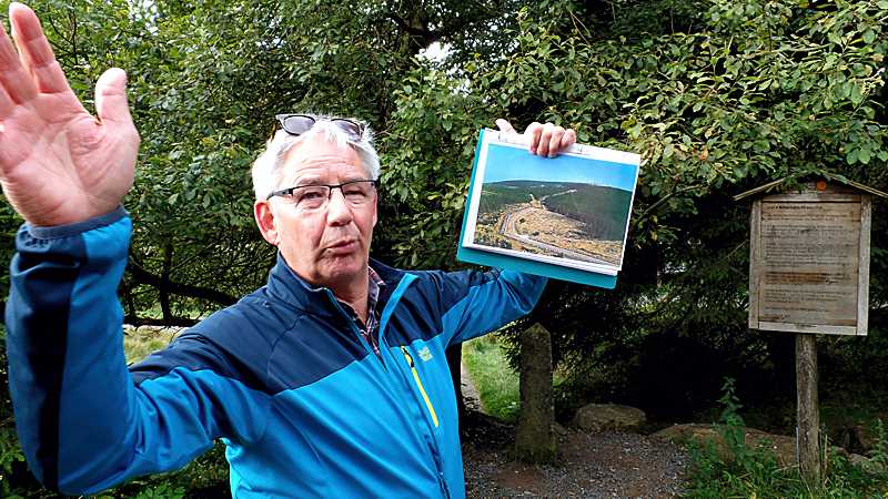An verschiedenen Punkten der landschaftlich reizvollen Tour schilderte Lothar Engler eindrucksvoll Ereignisse, die sich im Grenzabschnitt der Wanderung durch das schier unüberwindliche Fluchtverhinderungssystem zugetragen haben. Es sei vorgekommen, dass sich Grenzstreifen aus Ost und West nur wenige Meter gegenüber gestanden haben. Dabei zeigte Lothar Engler der Wandergruppe große Fotoaufnahmen von damals. Die Natur hat in den zurückliegenden fasst 28 Jahren den von der DDR abgeholzten Grenzstreifen wieder zuwachsen lassen.