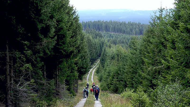 Bei spätsommerlichen Wetter und überwiegend strahlendem Sonnenschein führten rund 20 ehemalige Grenzschützer, teilweise mit ihren Frauen und Gästen, eine ca. 12 Kilometer lange Grenzwanderung durch. Um 9 Uhr ging es zunächst vom Ehrenfriedhof Oderbrück zum ehemaligen Grenzverlauf am „Dreieckigen Pfahl“. Nach sachkundigen Informationen wurde die Wanderung in südlicher Richtung entlang der ehemaligen innerdeutschen Grenze überwiegend auf dem mit Betonplatten ausgelegten Kolonnenweg der DDR-Grenztruppen, jetzt Harzer Grenzweg, fortgesetzt.