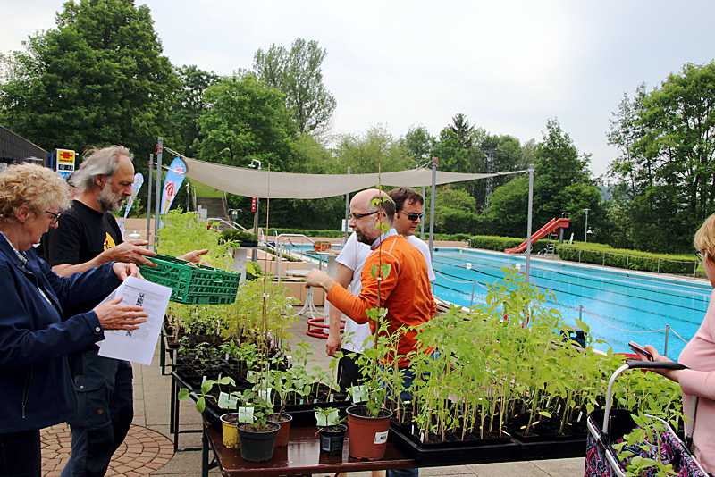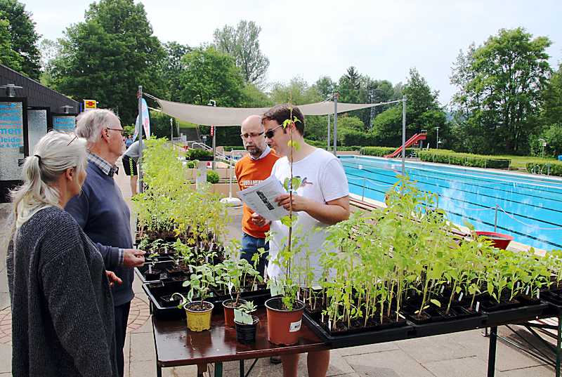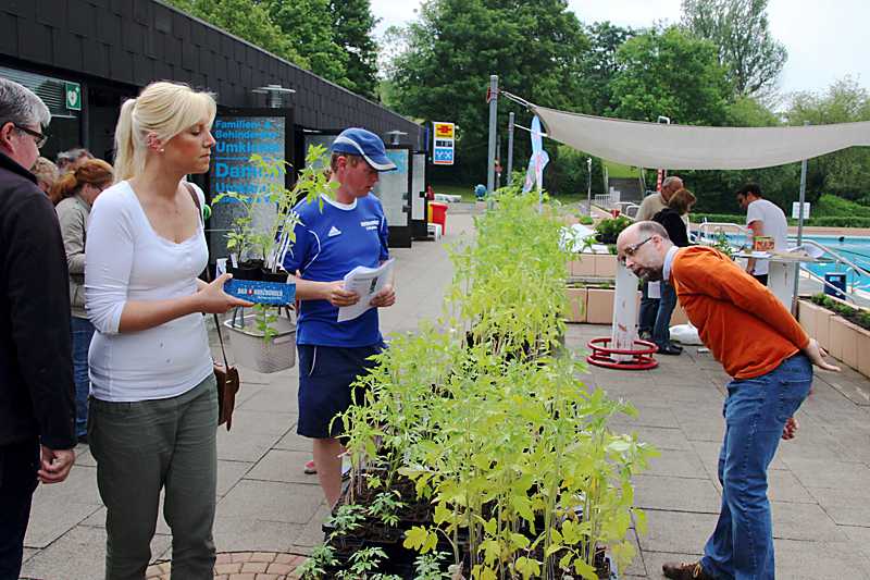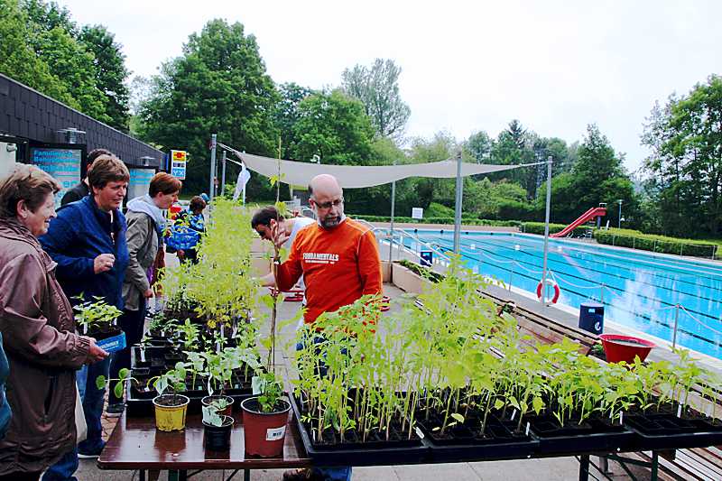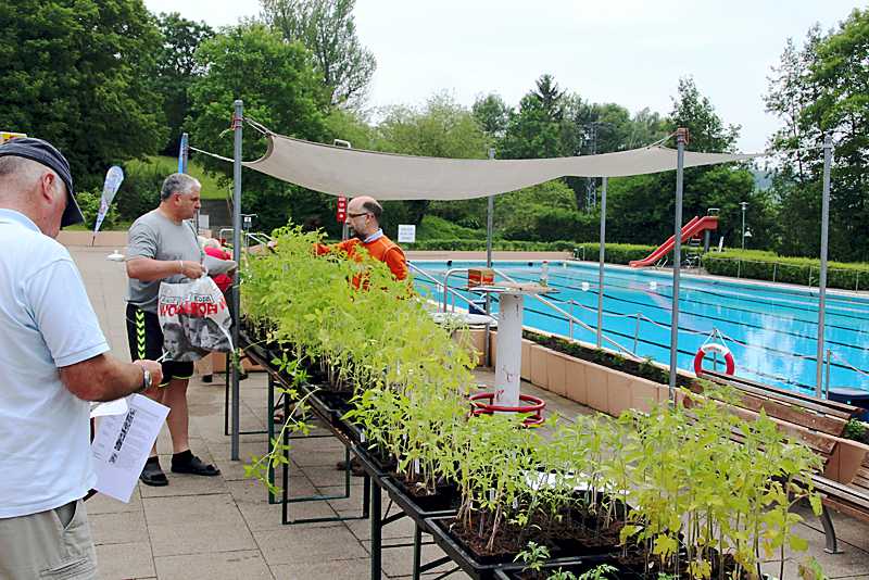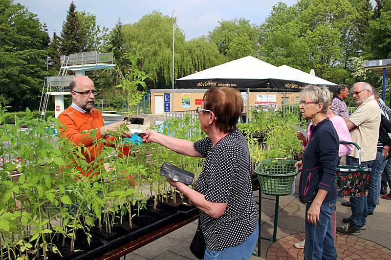 Es wurden wieder über 500 frisch gezogene Tomatenpflanzen, Chili, Peperoni, Zucchini, Kürbis, Gewürzgurkenpflanzen und bunte Blumen beim Grünen Markt angeboten. Anfang Februar hatte Dr. Sven Hagemann zahlreiche große Pflanzgefäße mit Samenkörnen gesät, nach einigen Wochen wurden sie dann in einen Topf eingepflanzt. „In diesem Jahr habe ich viel Saatgut aus Frankreich importiert, besonders bei den Cocktail-Tomaten, bei Chili und Peperoni“, so der Organisator.