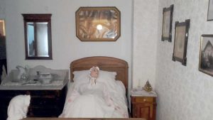 Das Wohnen um 1900 der Schladener Bürger umfasst nun die gute Stube u.a. mit Musikinstrumenten und gutem Geschirr. Die Küche, landwirtschaftliche Küche und alles was in die Waschküche gehörte, von erstem Waschbrett bis zur ersten mechanischen Waschmaschine, ist im nächsten Raum zu sehen. Zum Rundgang gehört auch noch das Schlafzimmer. Hier befindet sich neben der Waschkommode und der Schlafstelle, vieles was zur Wäsche und dessen Pflege gehörte. Eine Seite ist den Kindern vorbehalten. Dort sind z.T. 100 Jahre alte Hochstühlchen, Kinderwagen, Spielsachen, Kinderuhr und -lampe zu sehen.