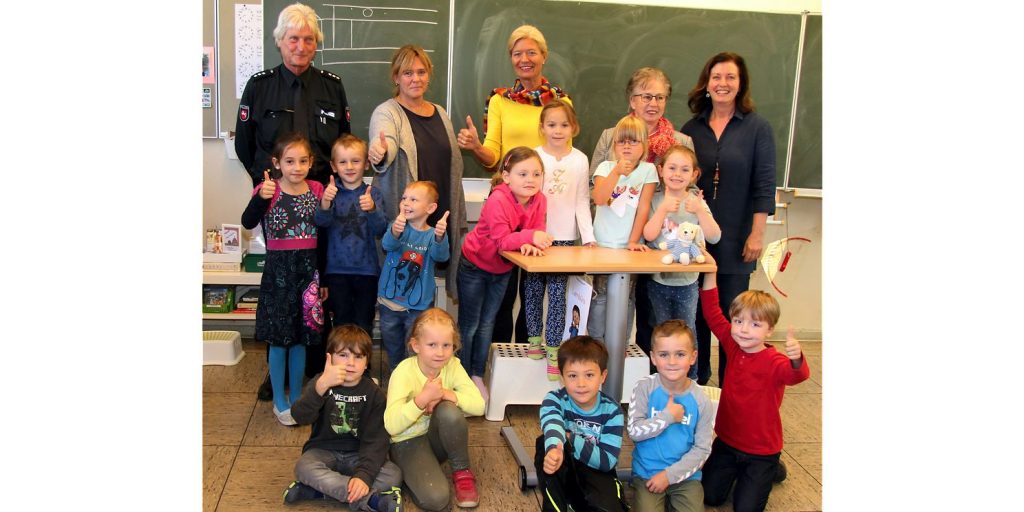 Die Tische sind höhenverstellbar und sind somit schonend für den Rücken. Die Vertreter der Hildegard-Reissdorf-Stiftung, Annelore Lehrke und Rainer Walke, waren bei der Übergabe der SitAndStand-Tische für die Klasse 1 mit der Fachlehrerin Kerstin Schürmann anwesend. Schulleiterin Astrid Nitsch bedankte sich im Namen der Schule für die Spende.