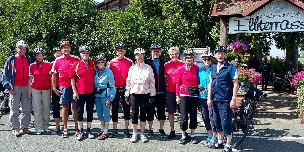 Das Abschiedsfoto zeigt die Radlergruppe vor den „Elbterrassen“ unweit Hitzackers, wo bei einer gemütlichen Kaffeetafel der Ausklang einer wunderbaren Radtour, vorbereitet und geführt von Rolf Petri, bei herrlichem Wetter und prächtiger Stimmung stattfand – kurz vor der Heimfahrt nach Vienenburg.