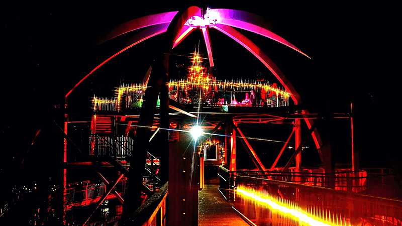 Am Wochenende vor dem 3. Advent fand in der Zeit von 16.00 bis 20.00 Uhr zum dritten Mal die Wipfelweihnacht auf dem Baumwipfelpfad statt. Mit bunten Illuminationen, hell leuchtenden Kerzen an Weihnachtsbäumen in der Einstiegskrone und auf dem Pfad bis zur Geologieplattform, sowie durch mehrere kleine Verkaufsstände, wurden die Besucher in luftiger Höhe auf das bevorstehende Weihnachtsfest eingestimmt. Für das leibliche Wohl hat das engagierte Team vom Baumwipfelpfad bestens gesorgt. Es wurden Bratwürste, leckere Waffeln u.a. angeboten. Bei den Temperaturen um den Gefrierpunkt konnten sich die Erwachsenen mit Glühwein und die Kinder mit Kinderpunsch aufwärmen.