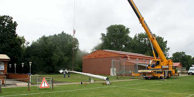 Nachdem im letzten Jahr die Flutlichtmasten im Radaustadion in Vienenburg demontiert werden mussten, wurden letzte Woche auch die Masten auf dem Wiedelaher Sportplatz entfernt. Grund waren Sicherheitsmängel in Form von Rost.