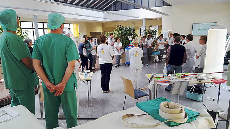 Experten aus unterschiedlichen Abteilungen und Bereichen zeigten in stündlichen Führungen an unterschiedlichen Stationen, was alles in den Harzkliniken für die Patientensicherheit getan wird, von der Aufnahme als Patient, über Aufklärungs- und Sicherheitsmaßnahmen bei der OP, bis hin zur Physiotherapie und Hygiene. Die einzelnen Schwerpunktthemen dabei: Checkliste vor der OP, Patientenarmband für jeden, Aktion Saubere Hände für beste Hygiene.