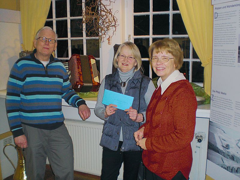 In ihrem Tätigkeitsbericht ließ sie das letzte Jahr mithilfe von 150 Fotos Revue passieren. Schacht bedankte sich mit einem Präsent bei Anne und Wolfgang Lohse für das große Engagement bei den Renovierungen in den letzten Jahren. Für ihre 25 jährige Mitgliedschaft im Förderkreis wurden Frau Karin Schulz und Herr Heinz Jürgen Wiechens, für 30 jährige Mitgliedschaft das Ehepaar Erika und Klaus-Gerhard Seuber und für ihre 35 jährige Mitgliedschaft Frau Marheine Fricke Reinecke geehrt.