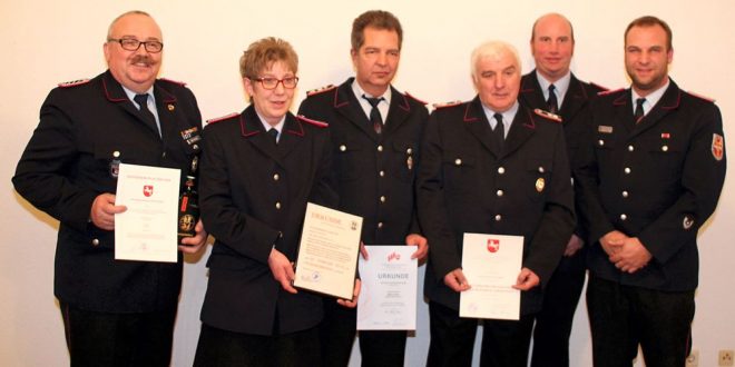 Mit der Ehrenmedaillie des Landesfeuerwehrverbandes für 40 Jahre Mitgliedschaft im Feuerwehrwesen des Landes Niedersachsen wurden die beiden Hauptfeuerwehrmänner Andreas Kern und Hans-Joachim Ludwig ausgezeichnet.