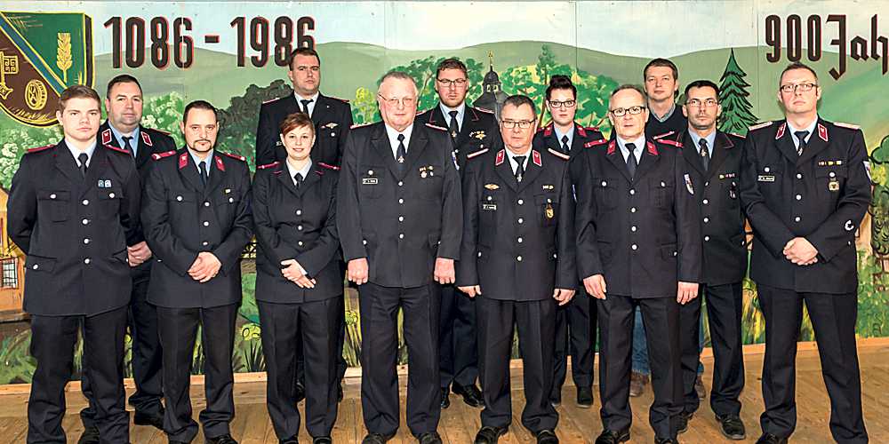 Von Links: Sascha Hartmann, Gemeindewehrleiter Enrico Mäntz, Matthias Kerwel, Nora Hoffmann, Christoph Weihe, Ehrenmitglied Dietmar Fricke, Jugendwart Marco Würz, Ehrenwehrleiter Hermann Lumme, Laura Lumme, Uwe Regber, 1. Vorsitzender des Fördervereins Andreas Wellge, Jens Rethfeldt und Ortswehrleiter Marco Allwardt