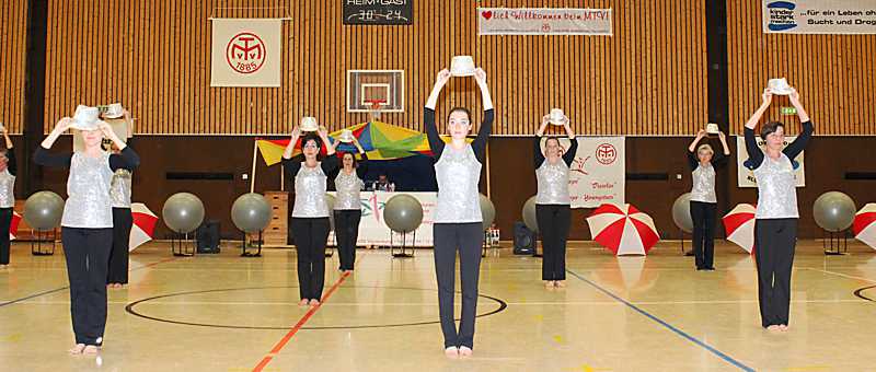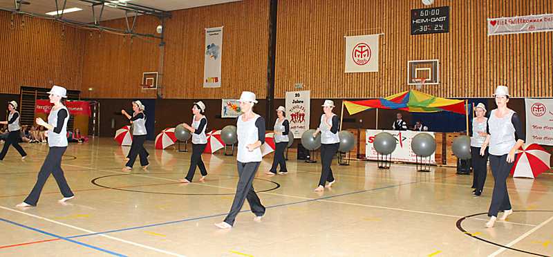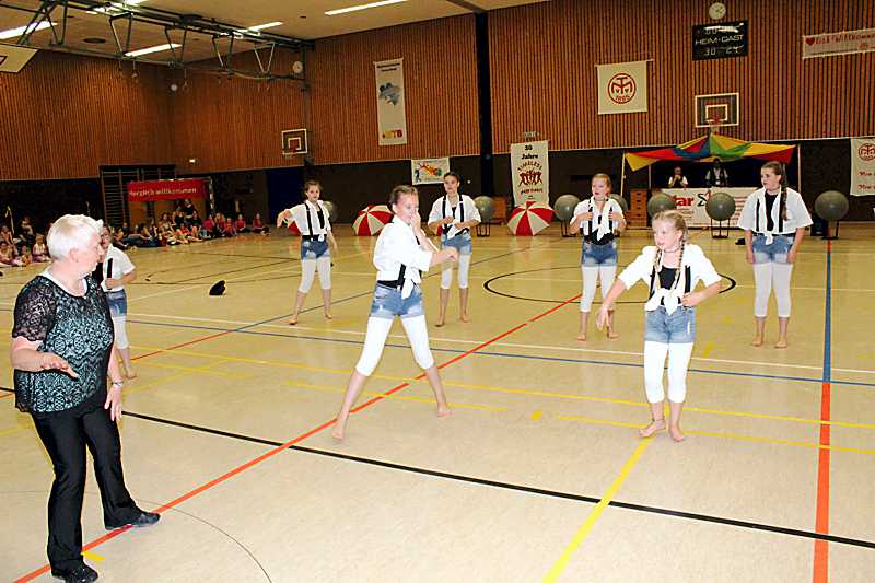 Die Organisatorin, Sportwartin Sabine Ross , hatte wieder ein buntes Jazzdance – Programm mit einer Rekordbeteiligung von 284 Teilnehmern zusammengestellt. Draußen herrschten hochsommerliche Temperaturen und in der Halle dienten Regenschirme in den Vereinsfarben des MTV als Dekoration.