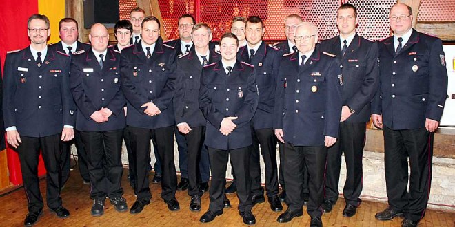 Gemeindebrandmeister Daniel Zalesinski beförderte Andre Stellmach zum Löschmeister und überreichte dem Hauptfeuerwehrmann Eckhard Schwarze das Abzeichen des Landesfeuerwehrverbandes für 40-jährige Mitgliedschaft. Ortsbrandmeister Thorsten Koch ernannte Julian Diehl, Dominik Caputo, Robin Neumann und Marvin Simons zu Feuerwehrmännern. Neue Schulterstücke erhielten Daniel Eggers und Kai Lenders zum Hauptfeuerwehrmann und Michael Lenders zum ersten Hauptfeuerwehrmann.