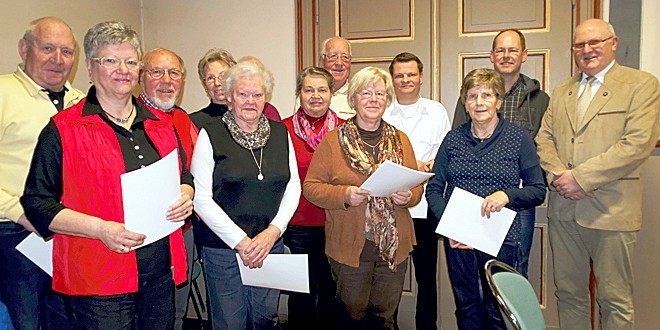 Auf der Jahreshauptversammlung am 26.03.2015 im Kaisersaal des historischen Bahnhofs überreichte Peter Fischer, Vorsitzender des Vienenburg-Tourismus e.V., Urkunden und Ehrennadeln an: Karl-Heinz und Margrit Janitz, Ursula Jankowski, Siegfried Kirchner, Enrico Kulp, Renate Petri, Dieter und Edith Pypke, Roswitha Schlüter (in Abwesenheit), Matthias Ujma, Wolfgang und Ute Weiß und Uschi Wendt. Ein Buch als kleines Dankeschön erhielten Frau Ilse Büchner (in Abwesenheit) und Frau Suzanne Büsing. Gutscheine erhielten für Ihre Unterstützung und Mitarbeit Barbara Dehne, Uschi Wendt und Jürgen Büsing für über 20 Jahre Mitarbeit im erweiterten Vorstand. Der 2. Vorsitzende Hartmut Wendt überreichte im Namen des Vorstandes eine Urkunde und einen Gutschein für 25-jährige, ehrenamtliche Arbeit an Peter Fischer.