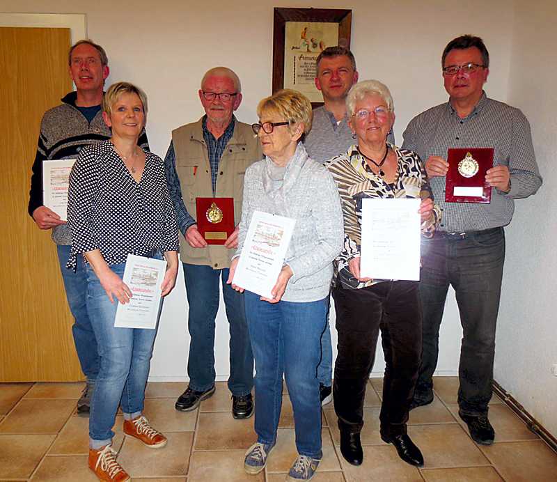 Anschließend standen die Ehrungen auf dem Programm: 20 Jahre im Verein sind U. Bolze, L. Meyer, U. Taranczewski, M. Lazar, C. Schulz, C. Sonnenrein, N. Gaschler, H. Morcinek, M. Lotze, K. Wiegmann und E. Ebert. 40 Jahre dabei sind M. Fredersdorf, H. Koch und F. Schneemilch. Klaus Angerstein und Hans-Jörg Harig wurde für ihre 50-jährige Mitgliedschaft zu Ehrenmitgliedern ernannt, ebenso in Abwesenheit Andreas Grünke.
