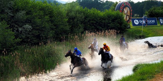 Am kommenden Sonntag findet das nächste spektakuläre Seejagdrennen statt. Der 3550 Meter lange Parcours führt in einer landschaftlich wunderschönen Kulisse über Hindernisse und durch den gegenüber dem Ziel gelegenen See.