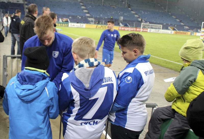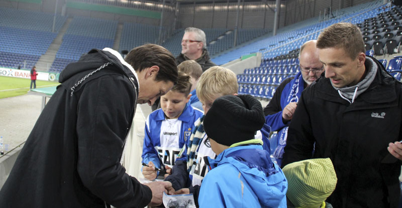 Nach dem Spiel trafen die Kids wieder einige Spieler, holten sich Autogramme und es wurden Erinnerungsfotos geschossen. Der sichtlich enttäuschte Lars Fuchs hatte verständlicherweise dieses Mal etwas weniger Zeit für seine Nachfolger, begrüßte sie aber trotzdem und schrieb noch einige Autogramme.