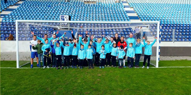 Nach dem Spiel kamen Lars und Marius selbstverständlich noch zu den Jungs. Nachdem sie ihre Trikots getauscht hatten, schrieben sie fleißig Autogramme und es wurden viele Fotos geschossen. Auch andere Spieler, wie der FCM-Torjäger Christian Beck, erfüllten Ihnen jeden Autogramm- und Fotowunsch. Ein Highlight war auch ein Gruppenfoto auf dem heiligen Rasen der MDCC-Arena. Zum Abschluss wurden die Kids im VIP-Bereich sogar noch mit Essen und Trinken versorgt.
