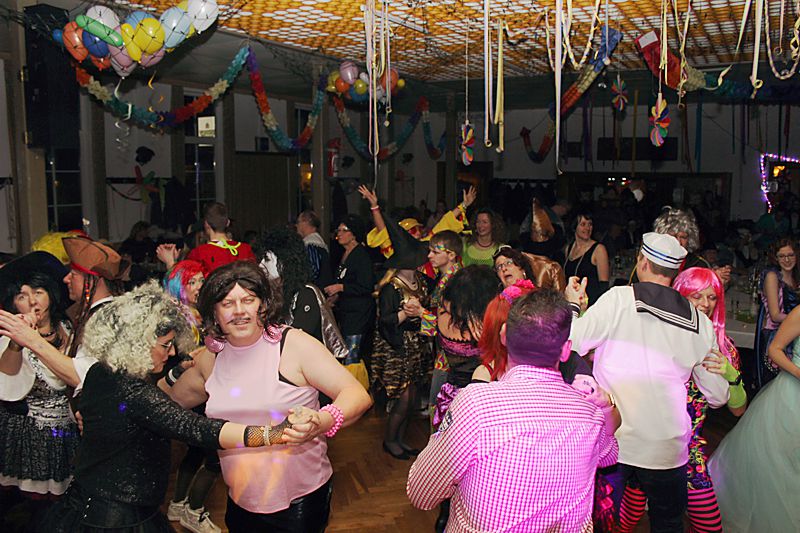Alle Närrinnen und Narren waren natürlich verkleidet, vom schwarzen Engel, Seemann, Hase, Gartenzwerg oder Scheich, bis zum Mexikaner und Indianer. Zur späteren Stunde gab es noch einen Auftritt eines Tanzballetts: Männer als Frauen und Frauen als Männer verkleidet.