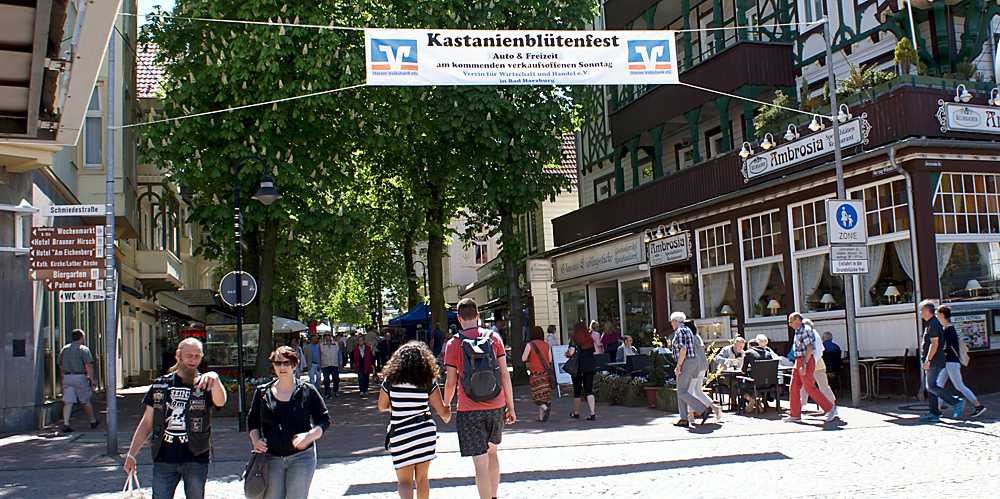 Weit über 10.000 Besucher dürften am Sonntag bei idealem Ausflugswetter das Kastanienblütenfest in Bad Harzburg besucht haben. Nicht nur die an der Herzog-Wilhlem-Straße liegenden Geschäfte bauten ihre Stände auf, auch viele außerhalb gelegenen Geschäfte waren auf dem Kastanienblütenfest vertreten. Lutz Mrotzek, erster Vorsitzender vom Verein Wirtschaft und Handel (VWH) strahlte wie die Sonne selbst. „Es ist einfach alles perfekt,“ meinte er sichtlich zufrieden. Und berichtet weiter, dass die Standflächen schon alle frühzeitig ausgebucht waren.