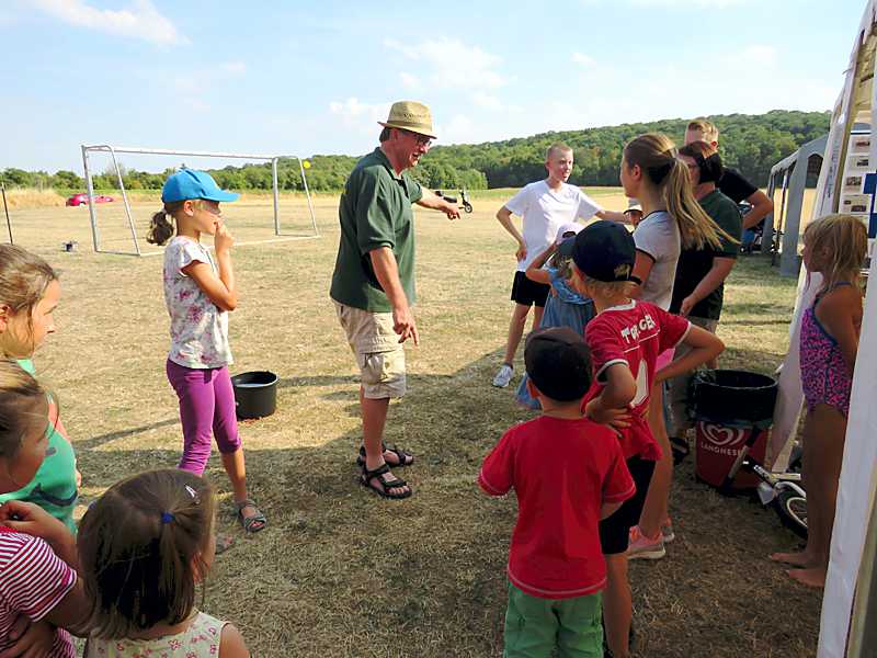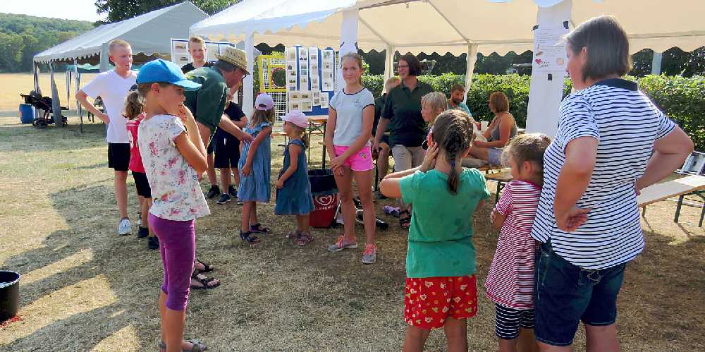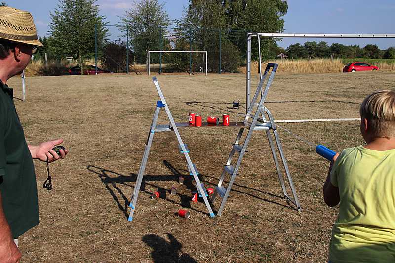 Die Ortsjugendpflegerin der Gemeinde Schladen-Werla Ricarda Haladuda und die Kinder und Jugendlichen stellten sich vor und hatte einige Wasserspiele vorbereitet. An einer Leine wurden Taschentücher befestigt, diese mussten mit einer Wasserpistole angespritzt werden bis sie herunter fielen. Bei einem weiteren Spiel wurde eine Pyramide mit Bechern aufgebaut, diese mussten mit einer Wasserpistole zum Fallen gebracht werden. Zum Abschuss gab es ein Geschicklichkeitsspiel: es mussten kleine Becher mit Wasser gefüllt und damit eine abgesteckte Strecke gelaufen werden, um dann das restliche Wasser in einen Eimer zu schütten.