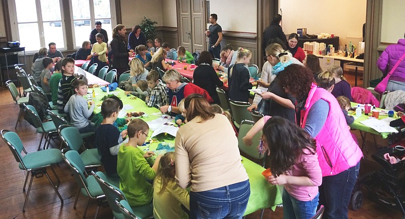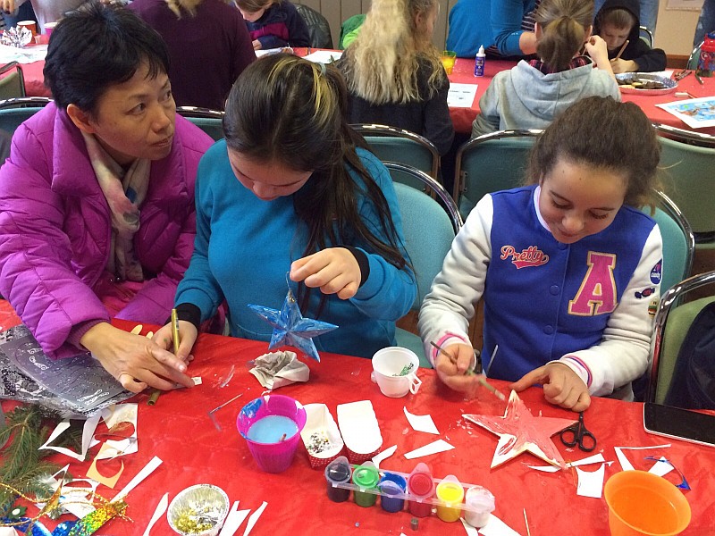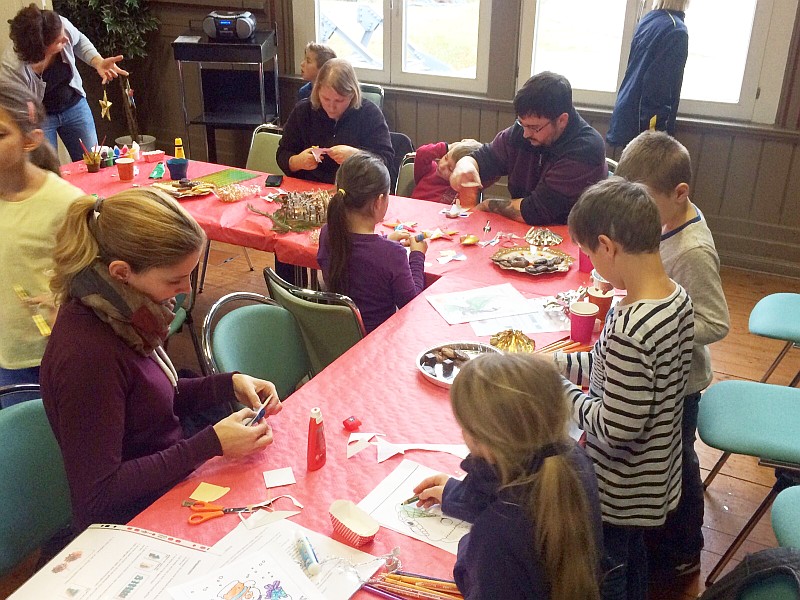 Kinder basteln Weihnachtssterne im Kaisersaal