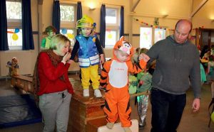 Das Team des TSV, mit Claudia Brede, Ulrike Rühe, Andrea Tomala und Karola Vorlop, hatte ein buntes Programm zusammengestellt. Es gab eine Reise nach Jerusalem, den Luftballontanz und Polonaisen. Ein Parcours war mit Bänken, Kästen und Matten zum Balancieren aufgebaut. Alle Kinder und einige Eltern waren bunt verkleidet, als Prinzessin, der Tiger von Winnie Pooh, Polizist, Pipi Langstrumpf und natürlich viele Feuerwehrleute. Für die Musik sorgte das Jugendzentrum Gielde mit DJ Maxi Kröger. Es gab die Stimmungslieder von Komm hol das Lasso raus, Theo, Polonäse – Blankenese, Das singende Känguru und Wenn der Tag zu Ende geht.