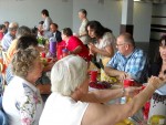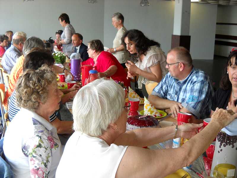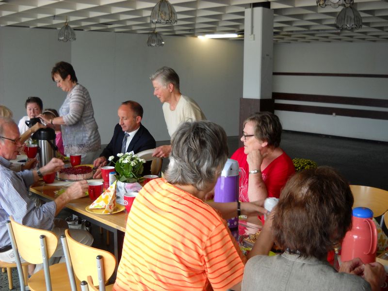 In diesem Jahr trugen ca. 40 Helferinnen und Helfer zum guten Gelingen des Festes bei, ca. 25 von ihnen nahmen am DANKE-CAFÉ teil. Im Vorfeld gab es viele kurzfristige Ausfälle im Helferteam. Umso glücklicher waren alle, dass ein paar Damen ganz kurzfristig halfen und sich super in das Team integrierten. Nun nutzten alle die Gelegenheit, sich besser kennen zu lernen und bei Kaffee und Kuchen zu plauschen.