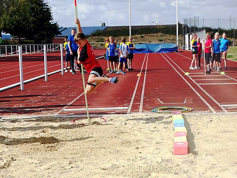Bei herrlichem Spätsommerwetter wurden interessante und fesselnde Wettbewerbe an der Planstraße für 65 Kinder ausgetragen. Alle drei Altersklassen U8, U10 und U12 warfen selbstgebaute Tennisballhämmer durch die Luft, maßen sich in Hindernis-Sprint-Staffeln und beim Team-Biathlon. Für die Kinder U12 gab es einen Stabweitsprungwettbewerb, der eine Grundübung für den Stabhochsprung darstellt. Für die Jüngeren wurde eine Weitsprungstaffel angeboten, bei der unter Zeitdruck möglichst oft und weit gesprungen wurde.