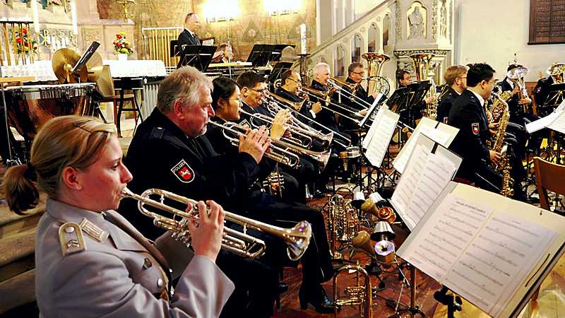 Das Heeresmusikkorps Hannover der Bundeswehr unterstützte mit einer Soldatin das Polizeiorchester Niedersachsen. „Im Rahmen der verfassungsgemäßen Amtshilfe kommt das nicht selten vor“, sagte die junge Trompeterin mit dem Dienstgrad Oberfeldwebel (w).