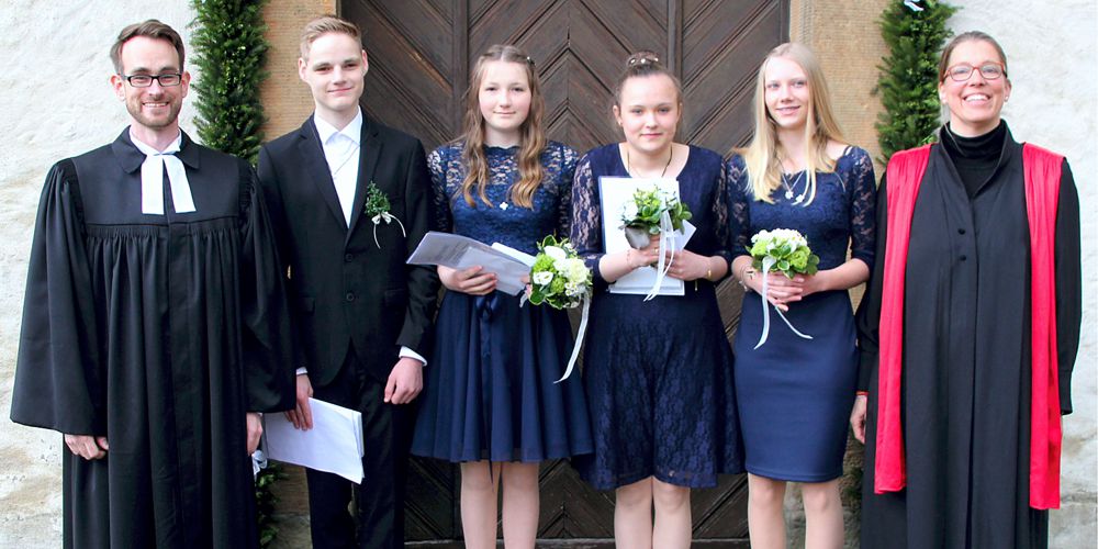 Von links: Vikar Martin Pyrek, Lukas Treske, Jule Marheine, Elina Oppermann, Leni Rahnefeld und Pfarrerin Dagmar Hinzpeter