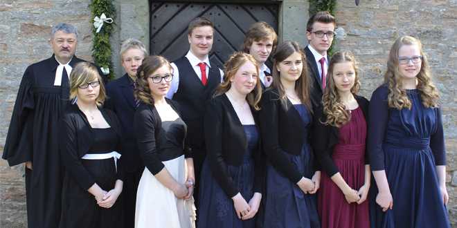 Vorne von links: Celine Klein, Lara- Luisa Ziegeler, Lyn Köhler, Jenny Jürgens, Giuliana Ulrich, Coralie Michaelis. Hinten von links: Pfarrer Johann Böhm, Robin – Luca Janert, Skip Luca Must, Christopher Breust, Damian Schlimm. Foto: Hohaus