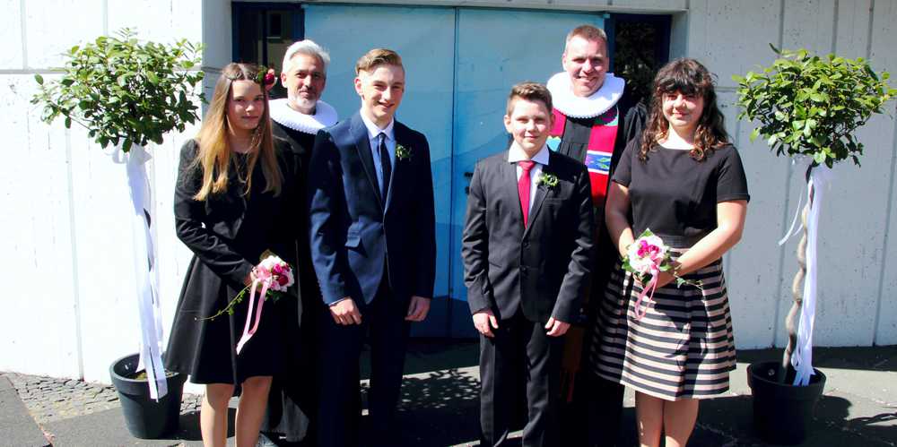 Von li: Natalie Meyer, Pfarrer Andreas Jensen, Justin Caracciolo, Lars Ole Puder, Pfarrer Ralph Beims , Hanna Marie Bönig.
