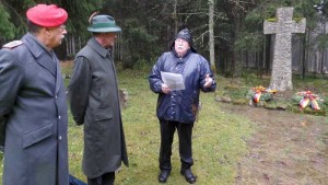 Am Volkstrauertag gedenken wir der Opfer von Krieg und Gewaltherrschaft und mahnen zum Frieden, so Claus Jähner. Auf dem Soldatenfriedhof bei Oderbrück ruhen 99 junge Soldaten, die in den letzten Kriegswochen bei Kämpfen im Oberharz sinnlos getötet wurden und teilweise erst 17 Jahre alt geworden sind. Auf der Kriegsgräberstätte sind auch 14 russische Zwangsarbeiter beigesetzt worden. Sie erinnern daran, das Deutschland spätestens seit 1942 zu einer Sklavenhaltergesellschaft geworden war. Bis zu 20 Millionen Menschen waren während der Nazizeit von Zwangsarbeit betroffen: Juden, Sinti und Roma, politische Gefangene, zwangsinternierte Italiener, verschleppte Osteuropäer und völkerrechtlich missbrauchte Kriegsgefangene. In den Gedenkworten ging Claus Jähner auch auf die aktuelle Flüchtlingsproblematik ein. Den vielen aus Not und Angst flüchtenden Menschen, die derzeit in ihr Hoffnungsland Deutschland strömen, muss geholfen werden. In unserem Zuwanderungsrecht muss sicherlich manches überdacht werden, aber keinesfalls das Grundrecht auf Asyl. Der GfS-Sektionsleiter schloss seine erinnernden und zugleich mahnenden Worte mit dem Zitat der Bundeskanzlerin Dr. Angela Merkel „Wir schaffen das!“ und nahm anschließend die Totenehrung vor.
