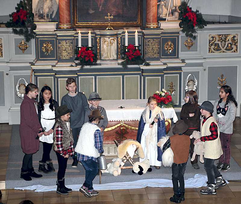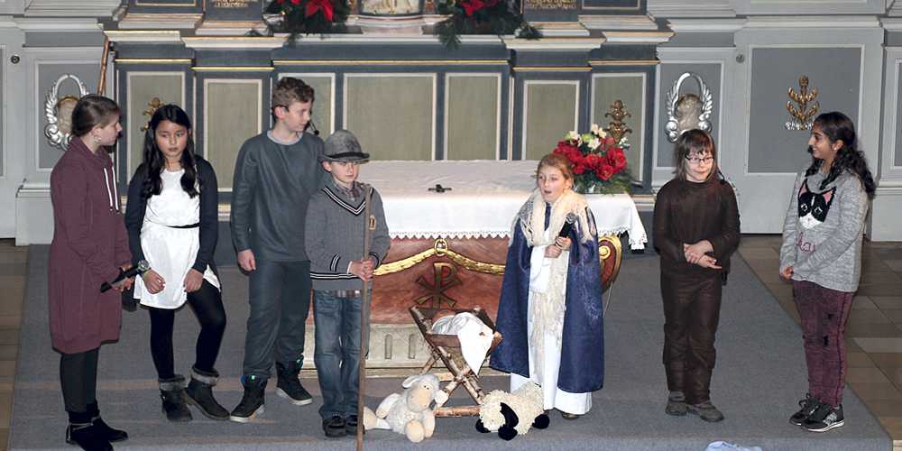 Während eines Familiengottesdienstes in der katholischen Pfarrkirche Heilige Familie wurde das Krippenspiel Die Zeitreise aufgeführt.
