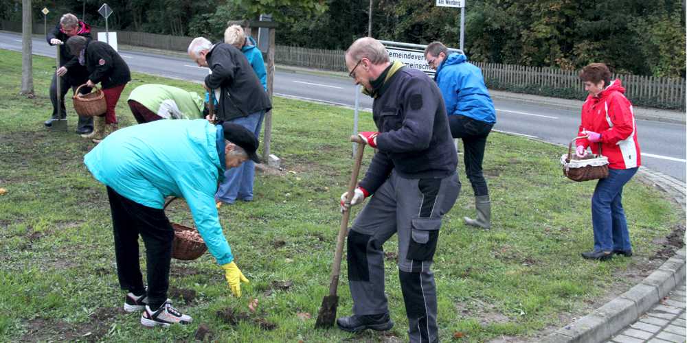Vorsitzender Bernward Köbbel schlug vor, diesmal den Krühgarten selbst in den Mittelpunkt der Pflanzaktion in Schladen zu stellen. Alle Teams teilten sich die große Grünfläche auf und brachten so 5.000 Krokuszwiebeln in die Erde. Das wird im nächsten Frühjahr sicherlich ein blühender Blickfang am Ortseingang werden.