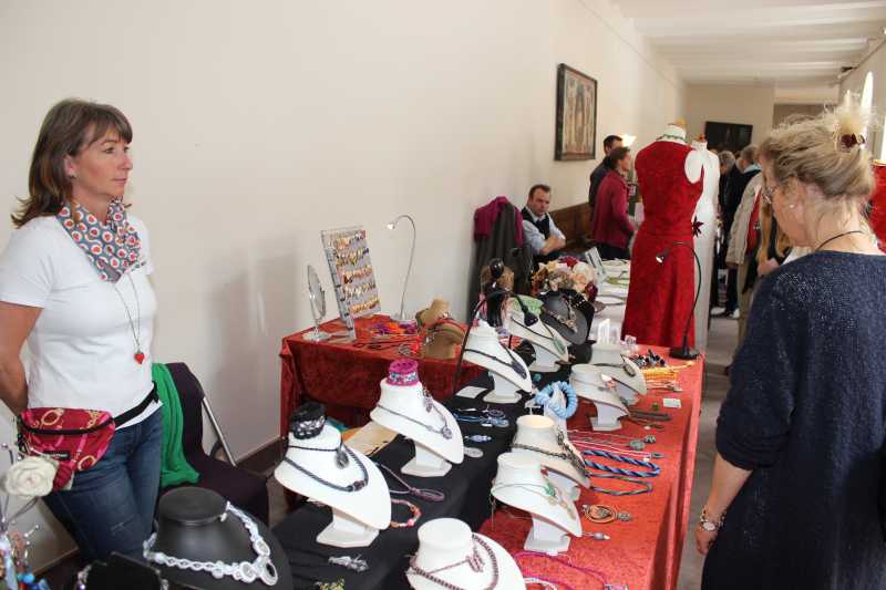 Holzspielzeug wie Eisenbahnen, Trecker, Magnetbahnen und sogar ein Kochherd, alles mit Hand gemacht, gab es von einem Aussteller aus Wolfenbüttel. Gedrechselte Schalen und Brettchen aller Art, alles aus einheimischen Hölzern wie Kirsche, Esche, Ahorn und Lerche waren die Produkte von einem Drechsler aus dem Künstlerdorf Worpswede. Accessoires in neuartigen Formen mit lebhaften Akzenten und schönen Details entwirft eine Textilkünstlerin aus Schiffdorf, außerdem gehören Kopfbedeckungen und Schals aus Wolle und Seide, aber auch aus Schmuck aus verschiedenen Materialen zum Angebot. Es handelt sich dabei um Unikate in verschiedenen Farbkombinationen und interessanten Strukturen. Helga Glahe aus Seesen- Rhüden gehört zu den hiesigen Ausstellern aus der näheren Umgebung, Lampen und Glasvasen fertigt sie aus Strohseide. Neben kleinen Geschichten und Aphorismen schreiben Gerhard Becker aus Hahndorf und Manfred Gerike aus Seesen hauptsächlich Gedichte.