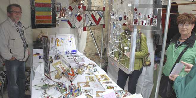 Menschliches bildet der Schwerpunkt der überwiegend heiteren Arbeiten. Inspiriert von großen Künstlern erschafft Birgit Gottwald aus alten Fliesen, Glas-und Spiegelbruch ihre ganz eigenen Kunstwerke: Mosaike in allen Farben und Variationen. Sie schmücken Spiegel, Vasen, Töpfe oder werden zu eigenständigen Bildern. Viele der Aussteller waren schon bei allen sechs Kunsthandwerkermärkten in Wöltingerode und werden auch am 1. Mai des kommenden Jahres wieder anwesend sein.